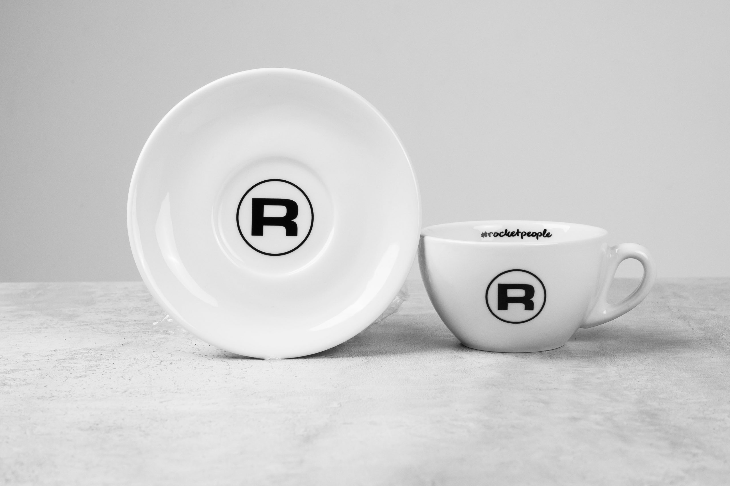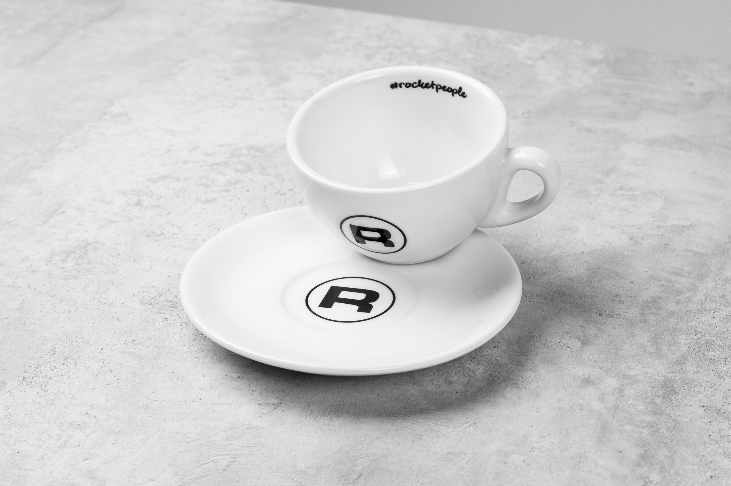 Чашка объемом 180 мл с культовым логотипом «R» Rocket и надписью #rocketpeople внутри идет в комплекте с блюдцем диаметром 14.6 см.
