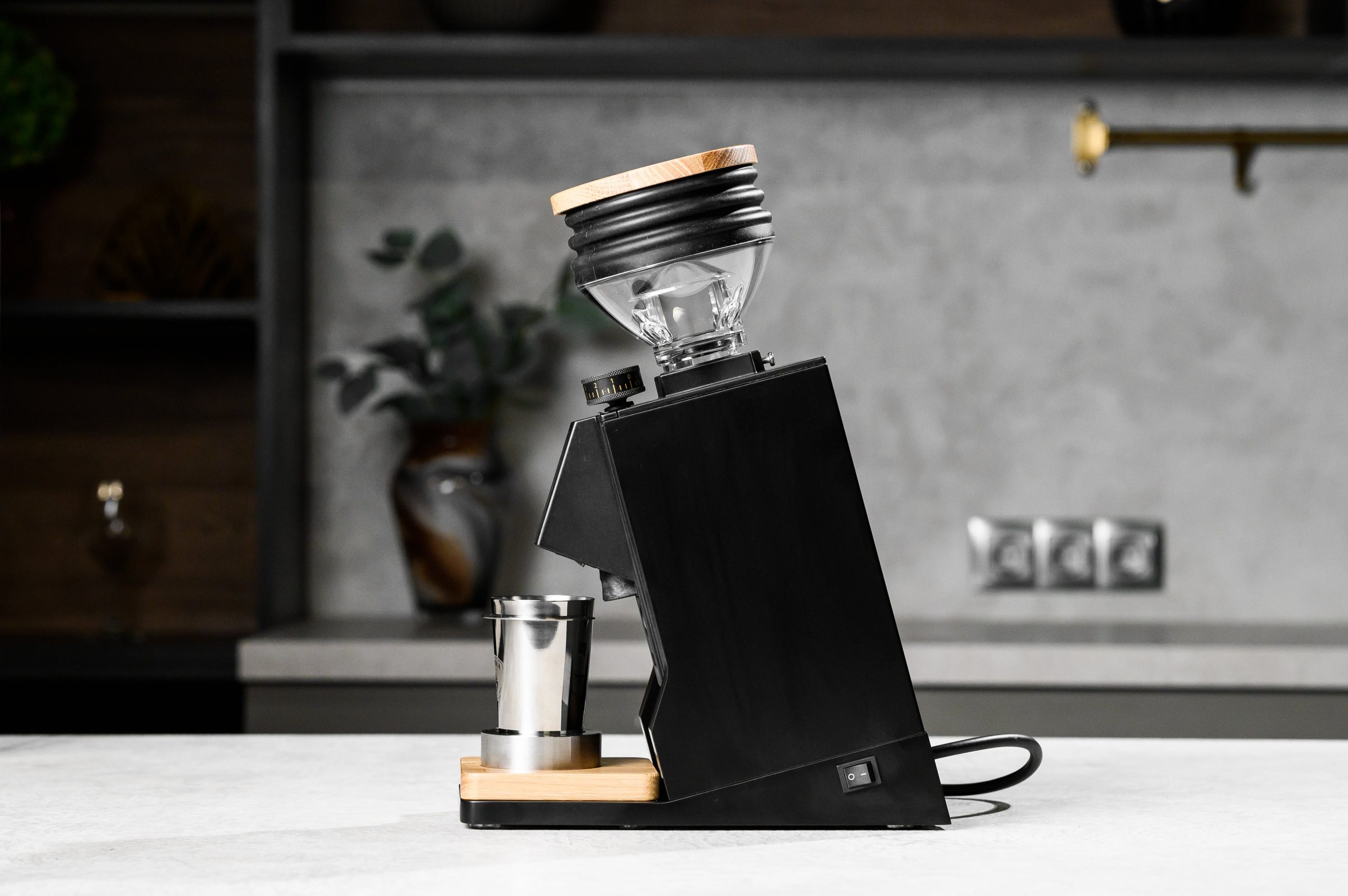 Eureka Mignon Single Dose – эстетичная кофемолка на одну порцию с наклонным корпусом и деревянными акцентами. Модель сочетает в себе элегантный дизайн, продуманные технологии и удобство использования.