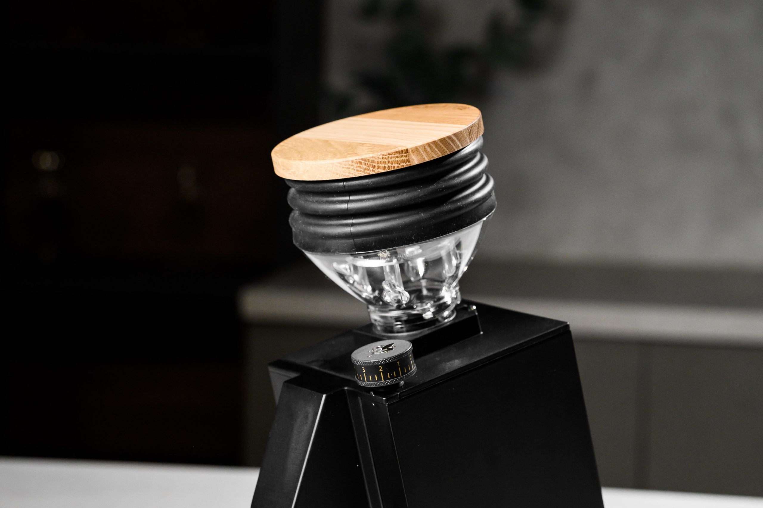 • новый бункер для зерен Single Dose с дубовой крышкой (45 г) и вращающимся металлическим ползунком;